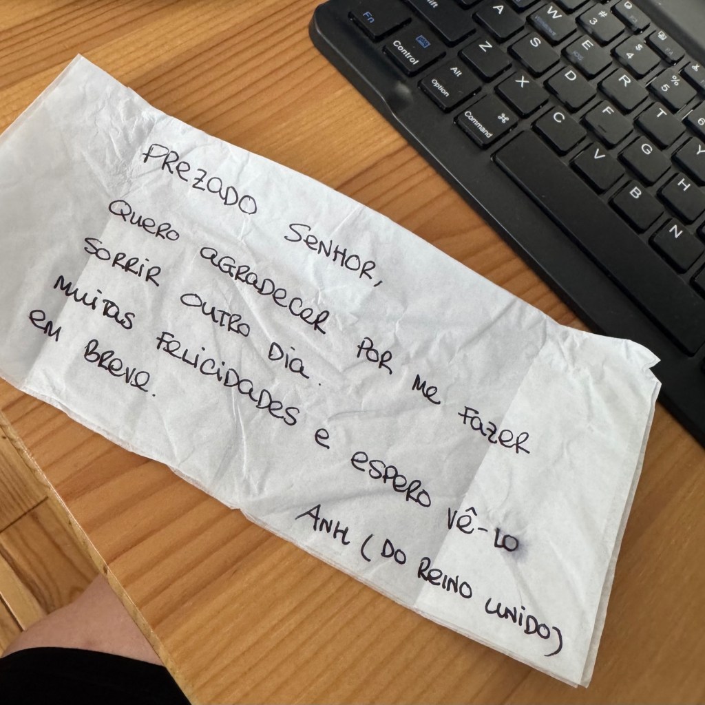 I wrote “Dear sir, thank you for making me smile the other day. I wish you all the best and hopefully to see you again soon”. I had to use google translate to translate the message into Portuguese because I didn’t want to be a lazy arse and write english. Once I do something, it has to be all the way. Or at least, I would try to make it go all the way. I think that’s something most people don’t understand about me.